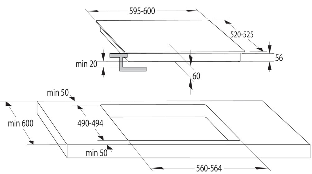 | Размеры для встраивания (ШхГ) | 560x490 мм |