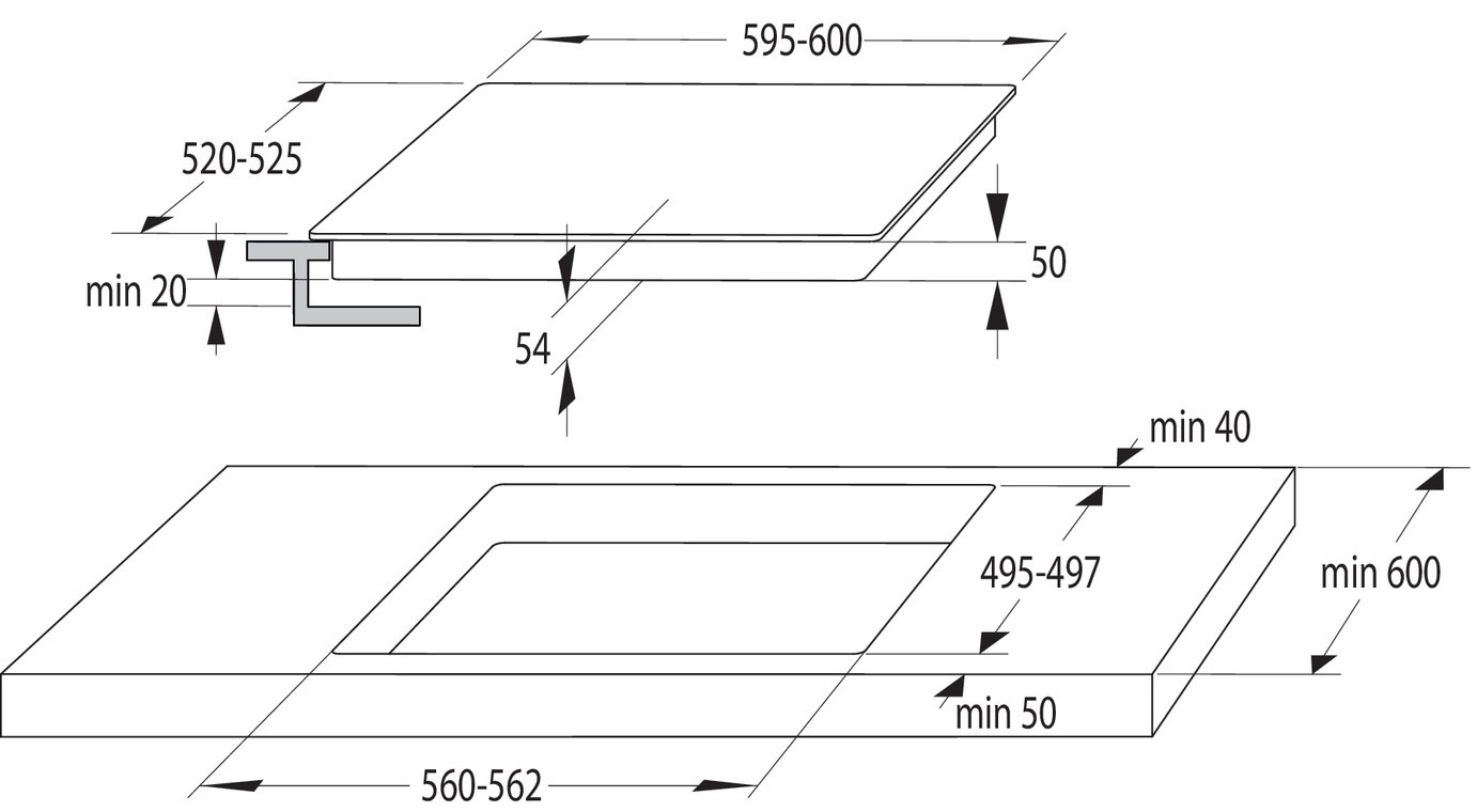 Размеры для встраивания (ШхГ) 560x495 мм