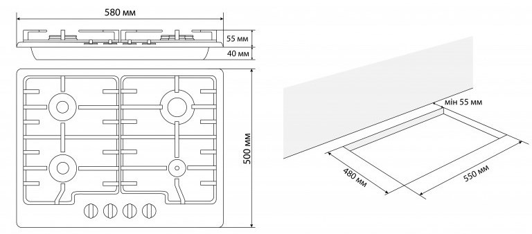 Размеры для встраивания (ШхГ) 550x480 мм