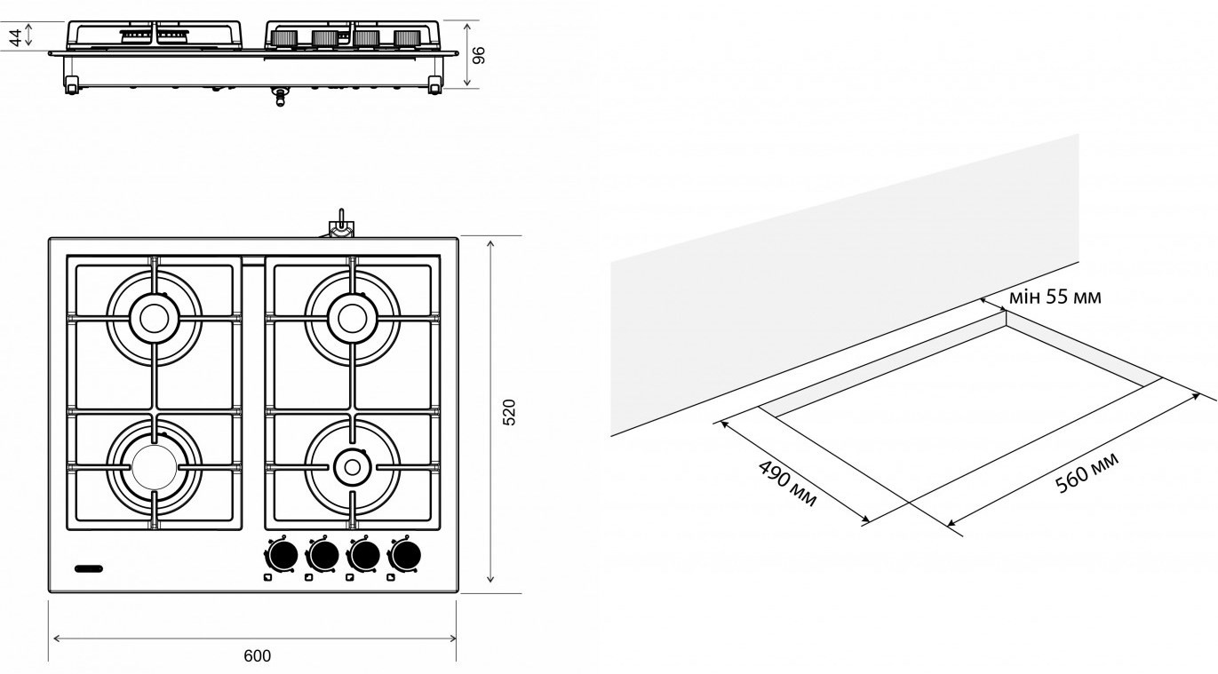 Размеры для встраивания (ШхГ) 560x490 мм