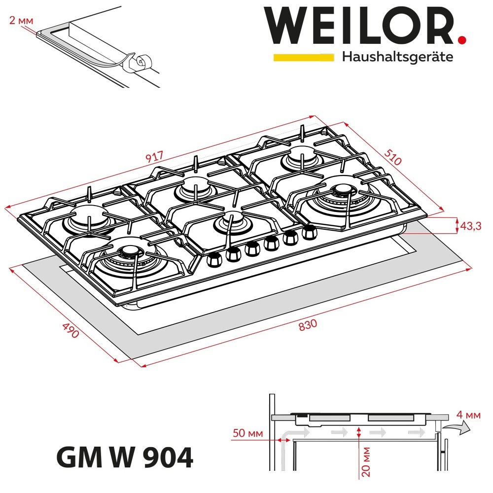Варочная поверхность Weilor GM W 904 SS нержавейка (5902767905916)