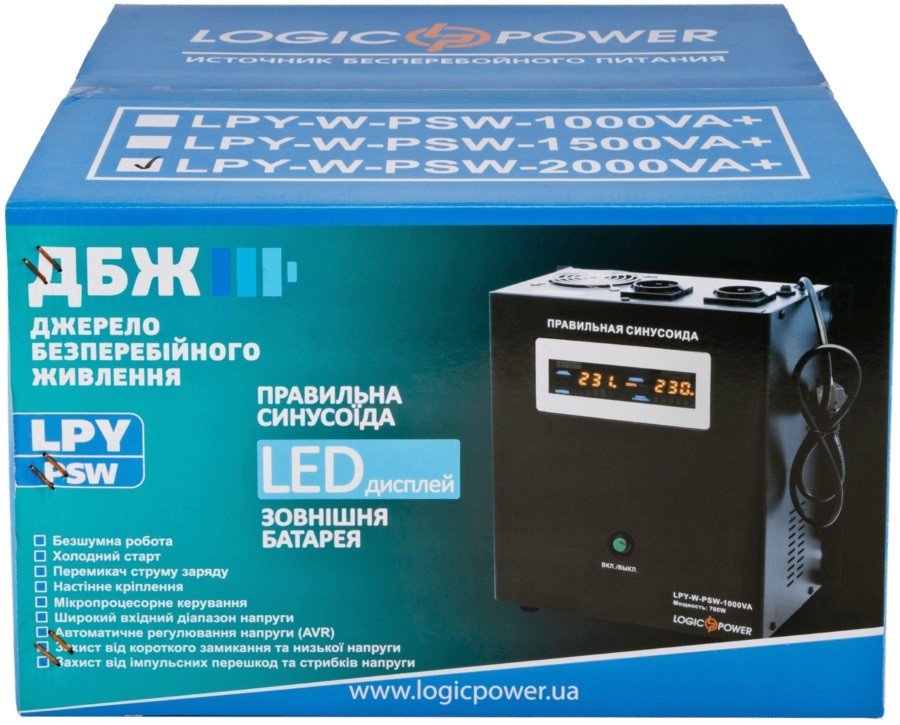 Описание ИБП Logicpower LPY-W-PSW-1000VA Plus 1000 ВА (0004144)